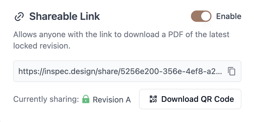 - Enable the shareable link — Toggle on the Enable button for the shareable link (toggle off will disable the link for anyone who has it).