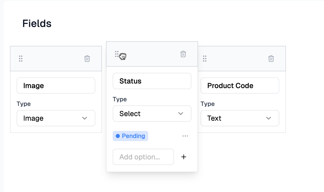 Choose the field type — Click the field type dropdown and choose either Select or Multi-Select.