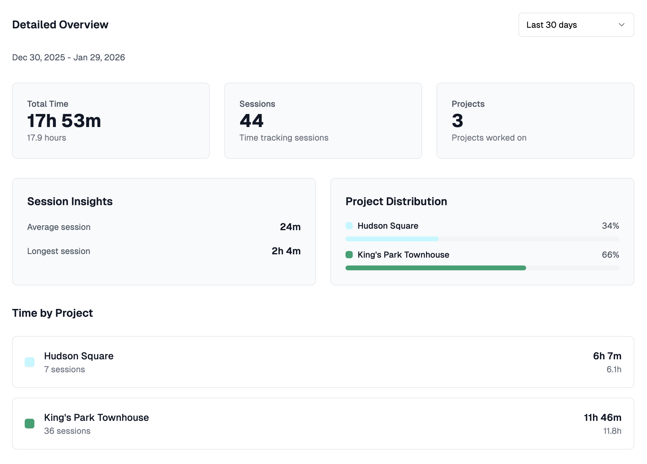 Automatic Time Tracking (Beta) - Timers automatically start when you open a project and stop when you navigate away. This eliminates the need to manually track time.